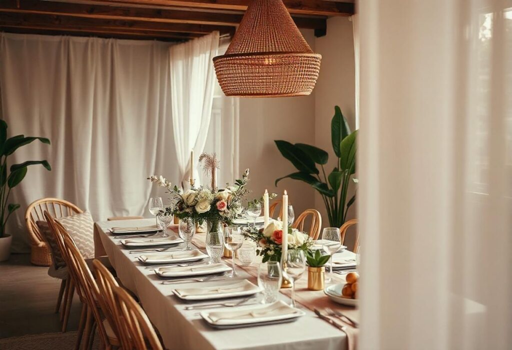 - Decoración natural: Arcos de flores, mesas rústicas y detalles personalizados.